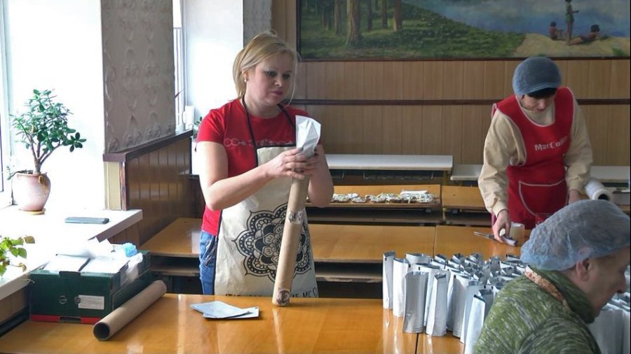 Ще один процес – перекручування – відбувається у шкільній майстерні. Готову страву фасують у герметичну упаковку, для надійності запаюють за допомогою гарячої праски. Вчителька Ольга Вдовиченко розповіла: рецепт називається "На око".