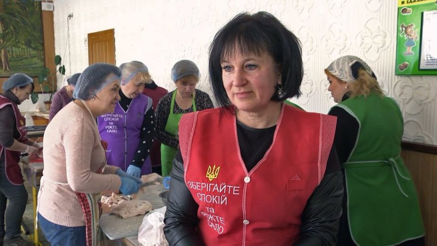 "Жменьку солі, жменьку перчика, шарами салко, яке дівчата нарізали – і перекручуємо. Часничок кладемо збоку – і теж "на око". Мусимо якісний продукт відправити нашим хлопцям, бо в нас у багатьох служать чоловіки, діти", – сказала волонтерка.