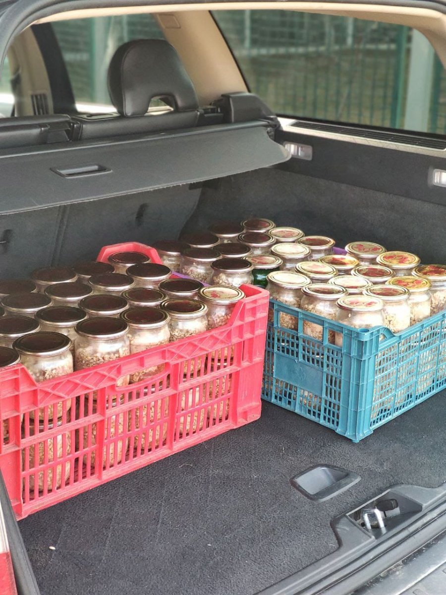 "376 Енергетичних банок! І все це для наших захисників, від Свято-Миколаївського храму с.Пульмо. Більш, аніж 100 кг курятини, 13 кг гречки, 10 кг перлової крупи, квасоля, 9 автоклавів, велика віра та вміння наших господарів і господинь принесли надзвичайний результат", - написав священник.