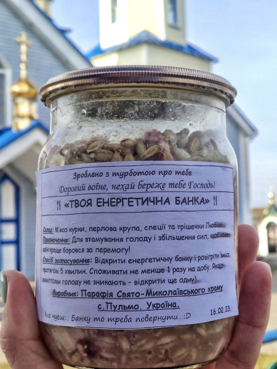 Парафіяіни Свято-Миколаївського храму села Пульмо колишнього Шацького району на Волині виготовили та передали для захисників України кілька сотень енергетичних банок з тушкованкою.