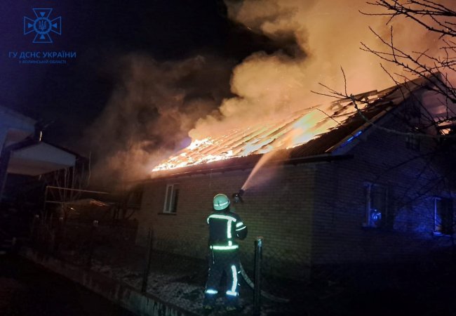Сьогодні вранці, 7 березня, у м. Нововолинську чергова варта міської ДПРЧ-5 ліквідувала пожежу в житловому будинку. Вогнем пошкоджено покрівлю та перекриття, меблі та речі. Повідомлення до служби 101 надійшло о 04:24. На гасіння подавали 3 водяних пожежних стволи, пожежу ліквідували о 05:16. Ймовірна причина: коротке замикання електромережі.