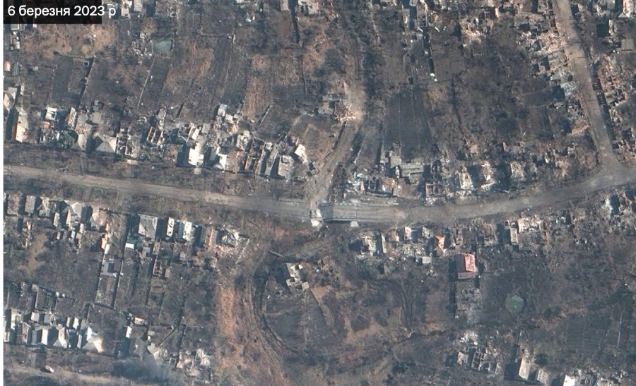 Зокрема, один з найчіткіших супутникових знімків міста Бахмут за кілька тижнів показав значні пошкодження житлових будинків, мостів і промислових підприємств після тижнів важких бомбардувань і вуличних боїв.