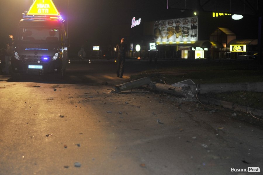 Аварія у Луцьку: машина розтрощила стовп, вулиця – без світла. ФОТО. ВІДЕО