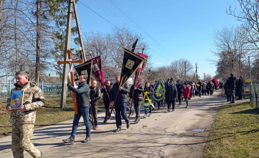 Попрощатися із полеглим захисником прийшли мама, дружина, діти, родичі, друзі, однокласники, односельчани, бойові побратими.