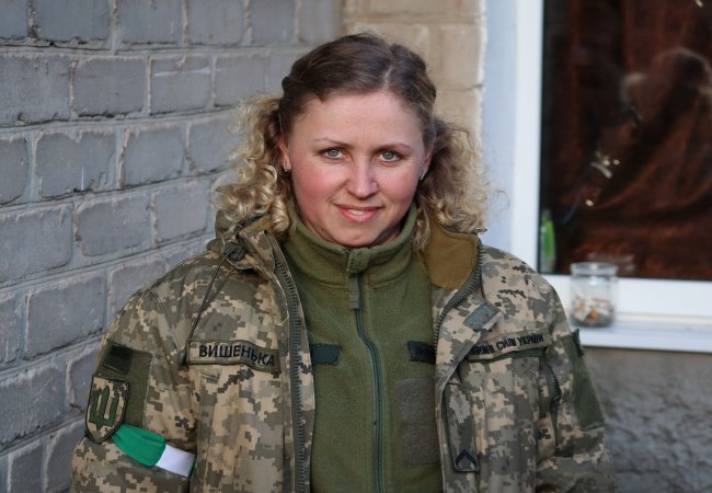 Старший солдат Оксана з позивним «Вишенька» (псевдо бійчині є похідним від дівочого прізвища і «приклеїлося» до неї ще у шкільні роки), яка є мамою трьох дітей, добровільно стала до лав ЗСУ.