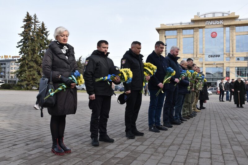 Пам'ятаючи про жертовність захисників і захисниць, котрі не вагаючись стали на захист нашої держави, сьогодні у Луцьку вшанували українських добровольців. На Театральному майдані обласного центру представники міської та обласної влади, військовослужбовці й громадськість поклали квіти до фотостенду “Герої Небесної Сотні - Загинули за єдність України”.