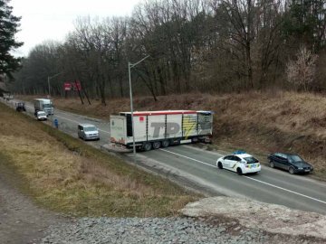 Унаслідок ДТП вантажівка перекрила рух чи не усією дорогою.