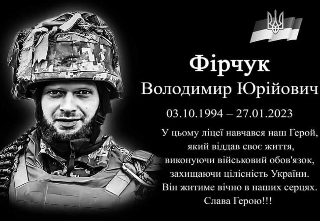 Нагадаємо, солдат Фірчук Володимир Юрійович (1994 р.н.) з Дубища загинув у бою за Україну, її незалежність та волю, під час виконання бойового завдання в районі населеного пункту Мар’їнка Донецької області 27 січня 2023 року. Володимир служив у ЗСУ на посаді оператора відділення безпілотного авіаційного комплексу.