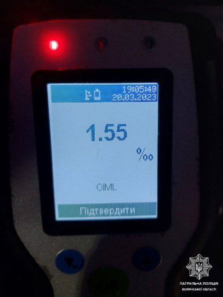 Під час спілкування з 67-річним кермувальником Renault поліцейські виявили в нього ознаки алкогольного сп’яніння. Коли чоловік пройшов огляд за допомогою приладу Drager, результат становив 1,55 проміле.