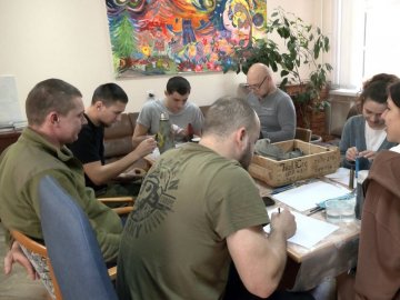 Нинішнє заняття з арттерапії відвідало шестеро чоловіків. Серед них – 24-річний волинянин Сергій. Він – кухар, що спеціалізувався на італійській кухні, торік у березні став сапером. Нині вів року по госпіталях Сергій оговтується від другого поранення, яке отримав під Бахмутом.