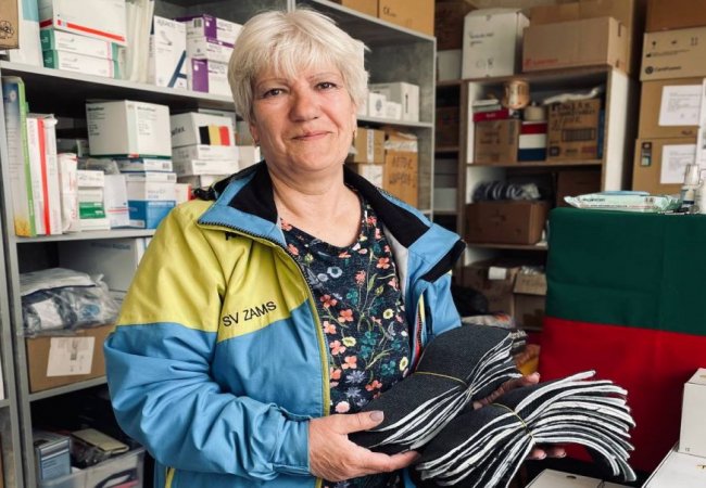 З початку повномасштабного вторгнення Галина не змогла бути осторонь потреб військових. Домовившись з Нововолинською швейною фабрикою про тканину, жінка почала шити теплі устілки.