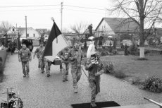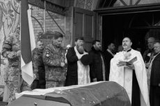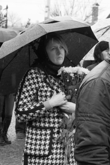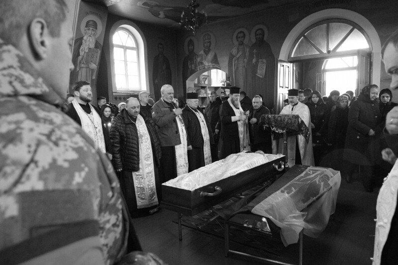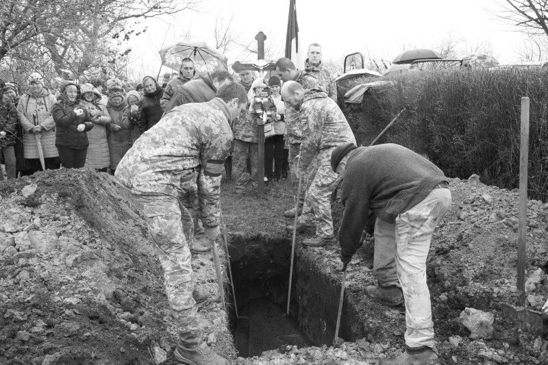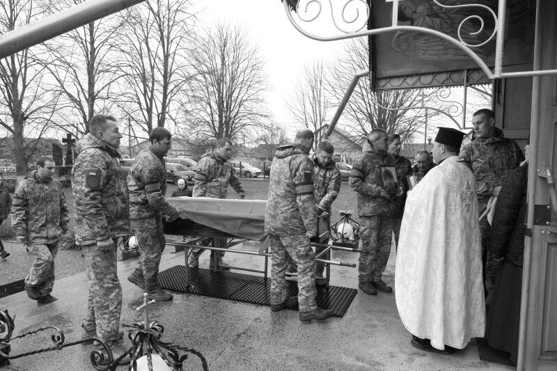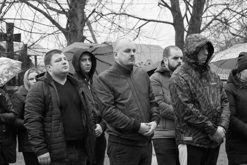 Дорогою до останнього спочинку солдата, люди схиляли коліна, а приватні автівки зупинялися. На мить припинився й дощ, котрий моросив від самого ранку, ніби даючи односельчанам попрощатися із полеглим у війні патріотом.