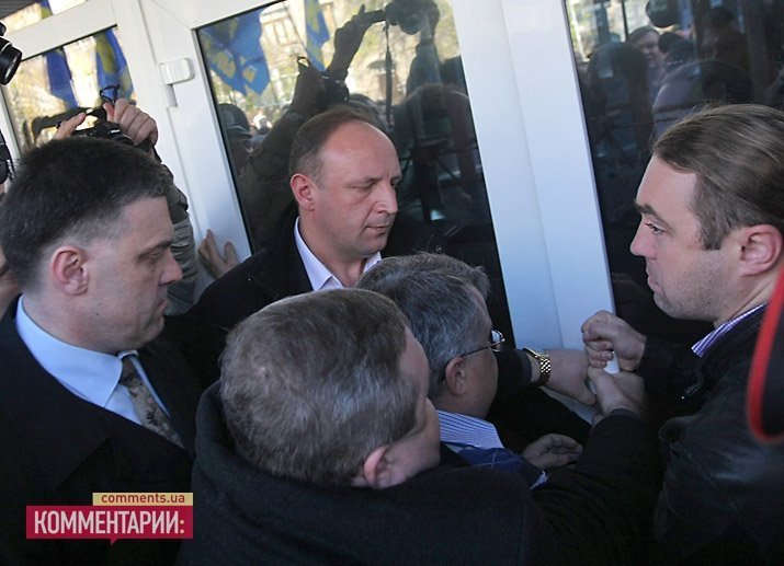 Після цього група «свободівців» виламала центральні двері й потрапила в приміщення. В оточенні бійців «Беркута» мітингують близько сотні активістів.