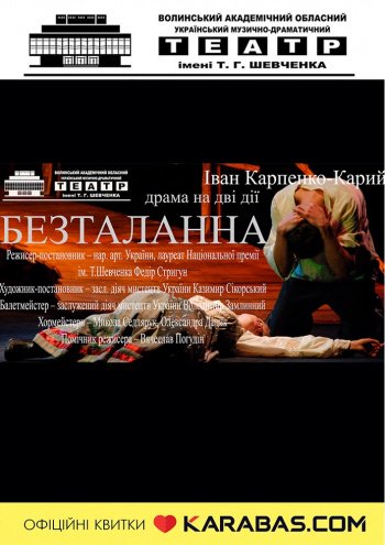 А уже за кілька годин до зали запросять на драму «Безталанна» Івана Карпенка-Карого у постановці народного артиста України, лауреата Національної премії ім. Тараса Шевченка Федора Стригуна. Колорит народних пісень та гулянь, що супроводжує болючі переживання головних героїв, створює особливу атмосферу. Любовний трикутник, де усі заслуговують щастя, проте жоден не знає, як його вберегти.