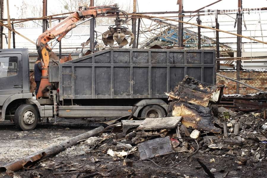 У Луцьку розбирають згорілий павільйон Центрального ринку. ФОТО