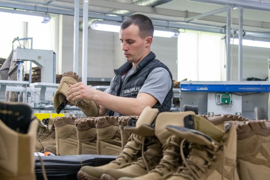 Невелика сімейна фабрика «Вадрус» спеціалізувалася на модельному взутті, але вже у перший тиждень великої війни у дві зміни почала виготовляти тактичне взуття. «25 лютого ми всі вийшли на роботу, обрали модель, яка найбільше була схожа на берці, і почали шити з тих матеріалів, які у нас були», - пригадують засновники підприємства, батько і син Микола та Вадим Русяки. Кажуть, уже відправили військовим понад 15 тисяч пар, і попит не спадає.