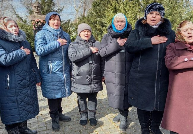 Зі слів пенсіонерок, заспівати славень директорка Будинку культури попросила їх біля місцевої крамниці.