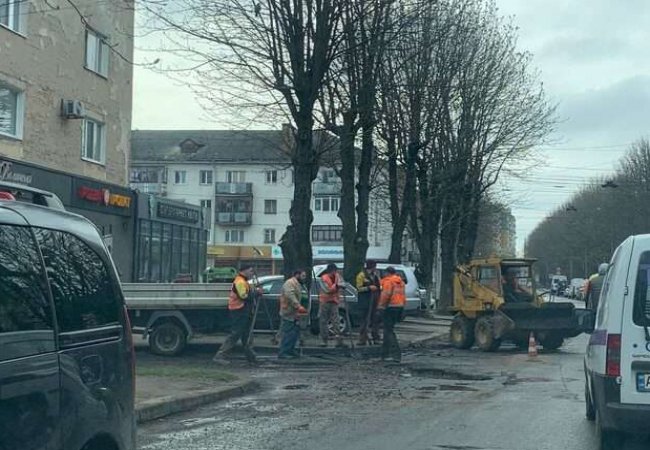Працівники поки утримуються від коментарів про завершення ямкового ремонту. Рух вулицею ускладнений.