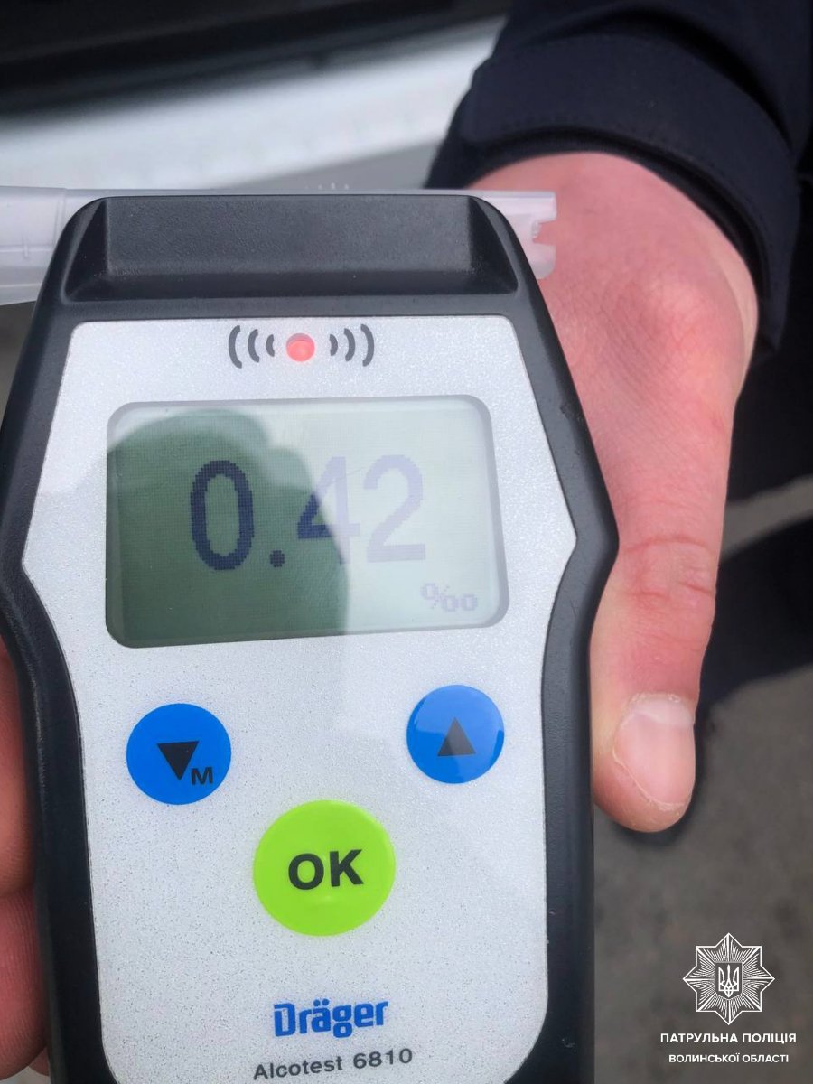 Під час спілкування з кермувальником патрульні виявили у нього ознаки алкогольного сп’яніння, прилад Drager показав результат 0,42 проміле. Спочатку чоловік запевняв, що вживав алкоголь днем раніше, але потім розповів, що випив після того, як скоїв ДТП.