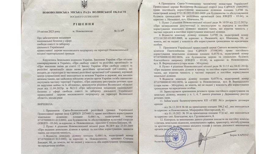 Нововолинська міська територіальна громада стала першою на Волині, де позбавляють права користування землею церкви УПЦ (МП).