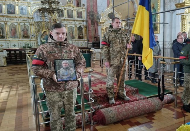 38-річного Андрія Черевка, який 23 квітня загинув на Донеччині, поховали на кладовищі, поруч із Свято-Петро-Павлівським храмом.