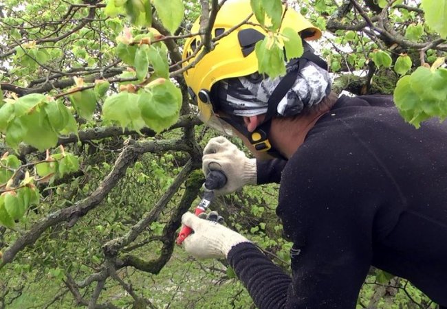 Фахівець видалив місця на дереві, які були уражені омелою. Там, де розріз був більший за три сантиметри, замазав спеціальною лікувальною мастикою.