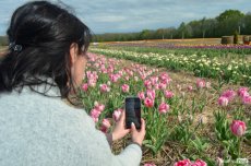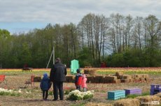 Здалеку помічаємо, що людей на фестивалі порівняно не дуже багато. Причин, вочевидь, кілька: будній день, не зовсім сприятлива погода і повінь, яка вплинула на цьогорічне цвітіння тюльпанів. Та попри підтоплене поле фестиваль вирішили провести. Мовляв, більша частина квітів таки вціліла.