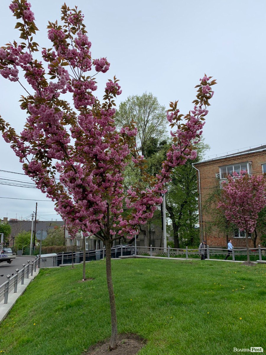Одна із найбільших локацій квітучих дерев розташована на вулиці Теремнівській навпроти готелю «Кедем», поруч із медико-діагностичним центром. Це місце стало улюбленою фотозоною для лучан та гостей міста. Мінісад там вже буяє у повній красі.