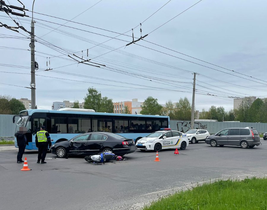Вчора, 4 травня, близько 14:30 на перехресті проспектів Молоді та Відродження відбулось зіткнення автомобіля «Volkswagen Passat» та мопеда «Viper».