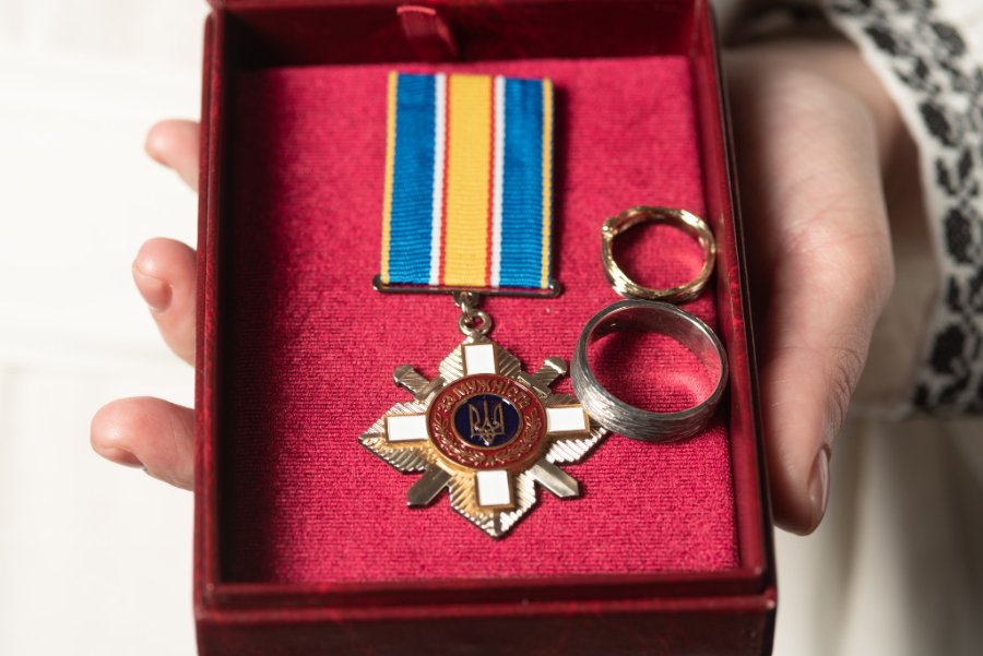 “Вперше в моєму житті на весільній зйомці була тільки наречена… Другий день ходжу під враженням від погляду Лери, її сміху, того з яким трепетом вона тримала в руках орден загиблого чоловіка”, — поділився враженнями фотограф.