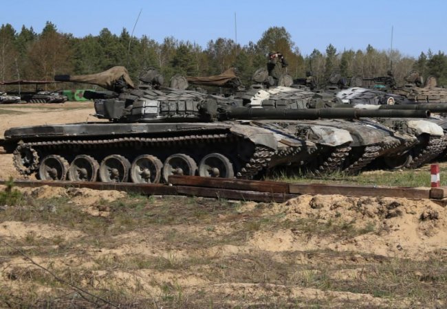 "На танковій директрисі екіпажі виконали контрольні стрільби з озброєння танка Т-72Б. Військовослужбовці підрозділу забезпечення виконали стрільби з автомата АКС-74", – відзвітувалися в білоруському міноборони.