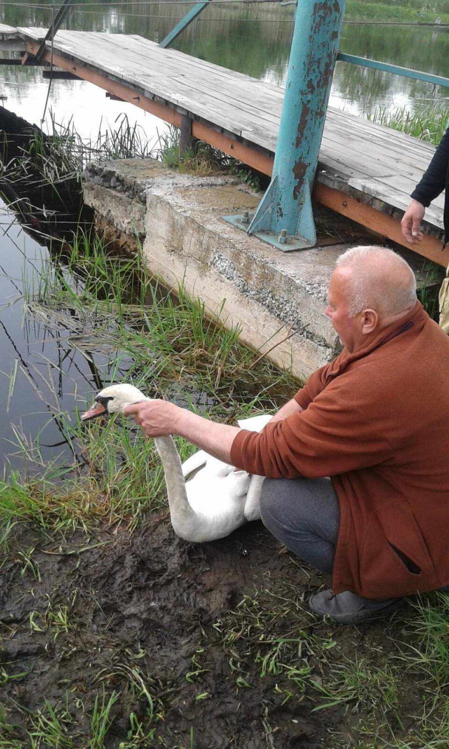 На Волині небайдужі допомогли врятувати лебедя. ВІДЕО