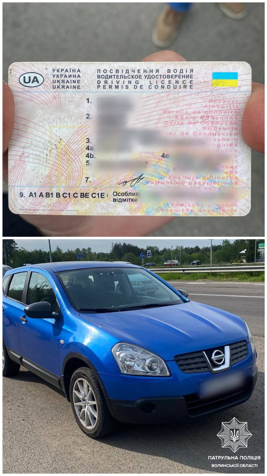 Перший випадок трапився учора на стаціонарному посту, що поблизу населеного пункту Цумань. Близько 14-ї години патрульні зупинили автомобіль Nissan Qashqai під керуванням 48-річного чоловіка. Під час перевірки посвідчення водія, інспектори виявили, що воно має ознаки підробки. Адже фото в документі було пошкоджене, а також посвідчення не відображалося в поліцейських базах.