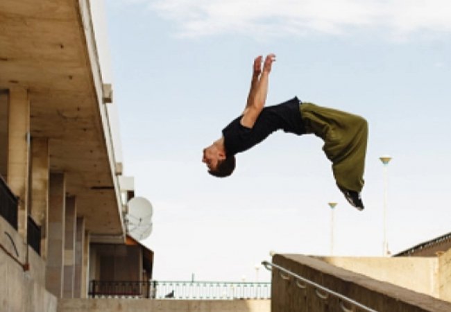 Підліток, стрибав із будівлі, що розташована на місцевому шлюзі. Вочевидь, він хотів виконати каскадерський трюк.