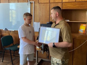 Начальник Другого відділу Володимир-Волинського РТЦК та СП підполковник Олександр Кондисюк вручив грамоти Головнокомандувача Збройних сил України генерала Валерія Залужного за допомогу ЗСУ учням Нововолинської громади.