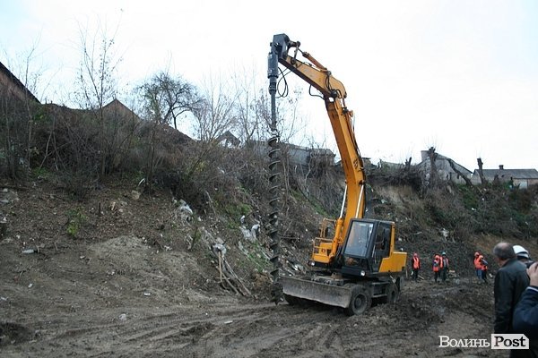 У Луцьку продовжують укріплювати небезпечне урвище. ФОТО