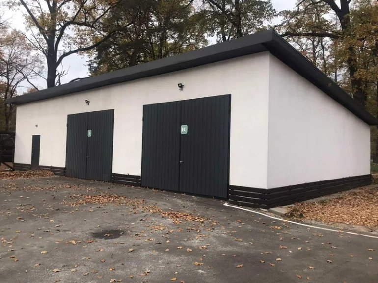 Це такі об’єкти: будинок мисливця – 461,1 кв.м, приміщення бані – 52,6 кв.м, гараж – 299 кв.м, конюшня – 157,1 кв.м, контора – 225,7 кв.м, бійня – 64,2 кв.м, господарська будівля – 72,8 кв.м, ангар для техніки – 196,8 кв.м, будинок єгеря – 63,7 кв.м.