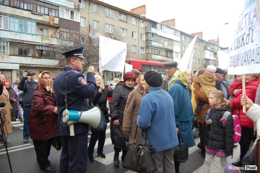 У Луцьку вкладники «Західінкомбанку» перекрили дорогу. ФОТО