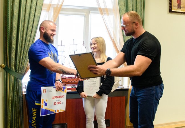 Спортсменка-пауерліфтерка Оксана Мотрунчик та її тренер Олег Хом'як з Луцька отримали подяки від міського голови та сертифікат на суму 20 000 гривень від міської ради.