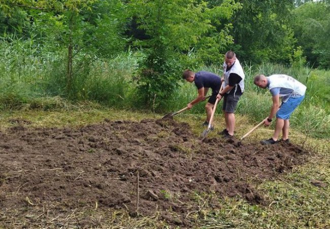 27 червня восьмеро волонтерів упорядковували місце для майбутніх грядок. Зі слів волонтера Романа Мамосюка, тут зачистили територію від гілок, покосили траву, а також вирівнюють ділянку, перекопуючи землю.