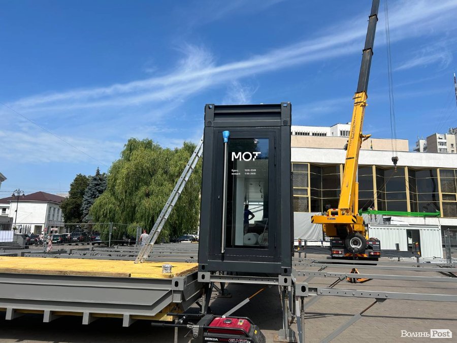 Відповідаємо – у центрі Луцька монтують тимчасовий культурний простір «Модуль тимчасовості» (МОТ), як його називають організатори – найбільший арт-проєкт року. Про це Інформаційному агентству ВолиньPost повідомили на місці монтажу та у громадській організації «Алгоритм дій», за сприяння якої, а також міськради виставка приїхала до Луцька після того, як вже була презентована у Києві та Дніпрі.