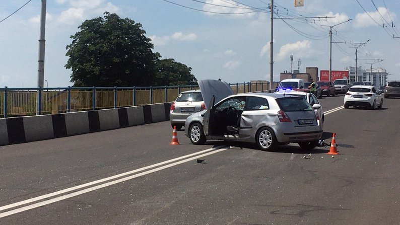 На місці аварії працюють правоохоронці. Рух на мосту та перед них – ускладнений, його регулюють патрульні.