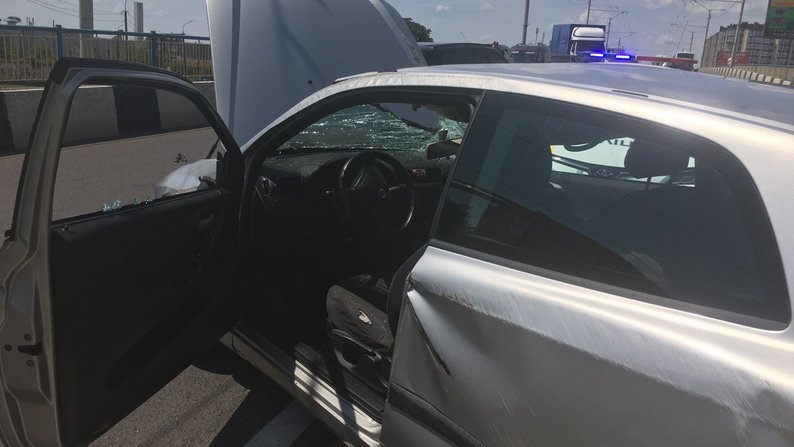 Як розповів Суспільному чоловік водійки Renault Андрій, його дружина в аварії не травмувалася. Зіткнення відбулося, коли жінка повертала з вулиці Мазепи на міст.