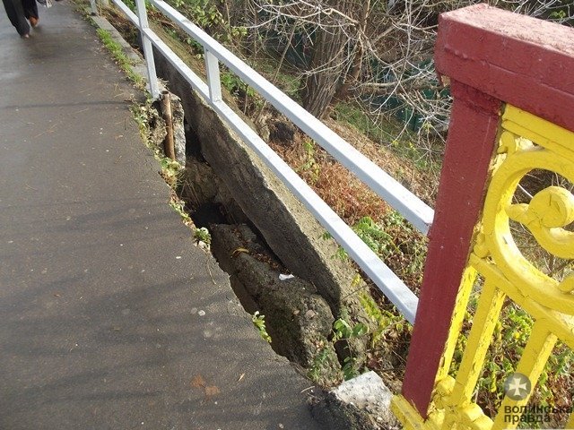 Якщо завтра на мості з’явиться ожеледиця, "провалля" перетвориться на пастку для пішоходів, - пише Волинська правда.