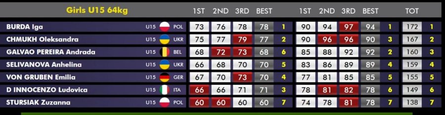 У ваговій категорії до 64 кг наша талановита важкоатлетка у видовищній боротьбі здобула срібні нагороди в ривку та сумі двоборства, а також бронзу в поштовху.