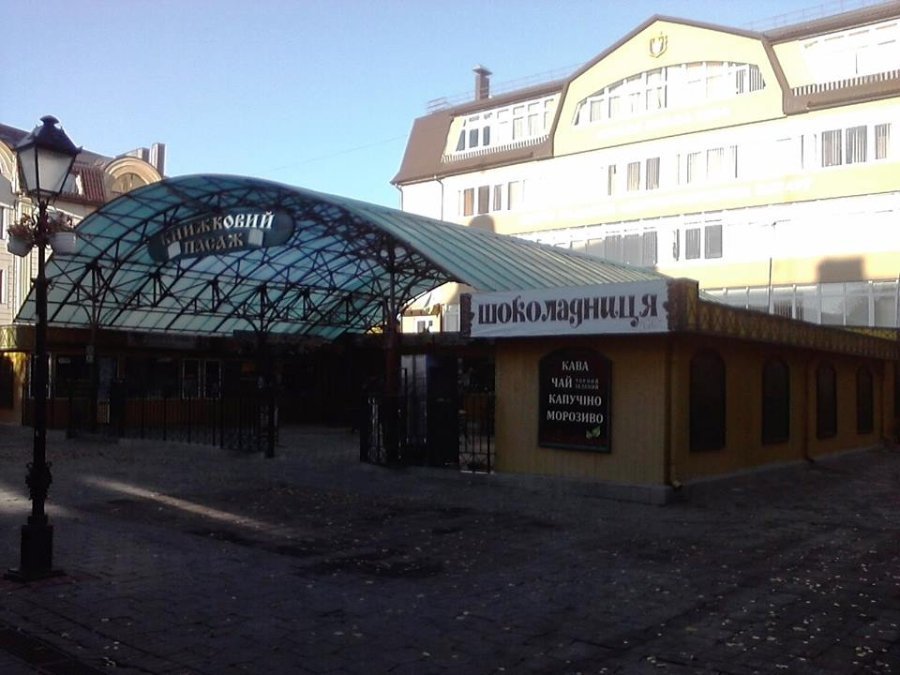 «На фото книжковий пасаж ‒ люблю міста західної України, там багато книжково-газетних кіосків у центрі міста. В кінці вулиці потішила назва магазину, вночі бачив, не сфоткав: Напої, Продукти, Книги ‒ їж, пий, але й читай, о!» ‒ резюмує автор.