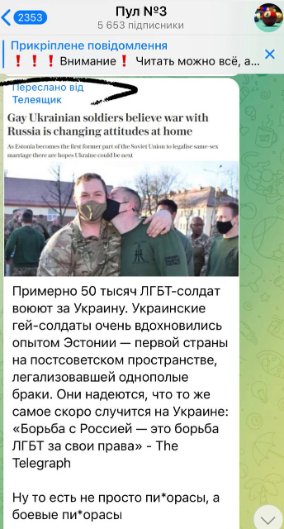 По-друге, у своєму тексті The Telegraph використовує інформацію з інстаграм-сторінки ГО «Українські ЛГБТ+ військові за рівні права», яка днями опублікувала офіційний коментар щодо цієї ситуації.