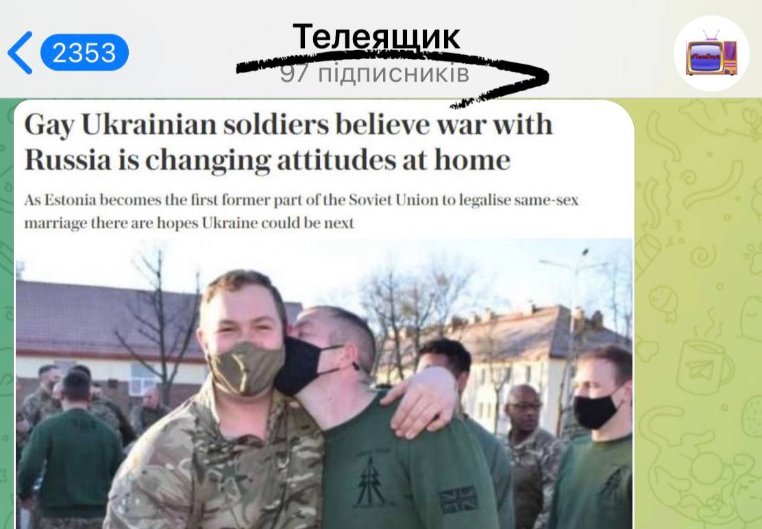 Наприклад, раніше це фото «ілюструвало» новину про геїв-солдатів з Британії. Зазначимо, що ця публікація – розміщена на сайті російського центру «Катехон», який веде інформаційну війну проти України.