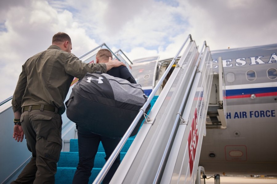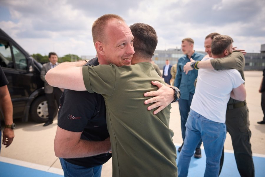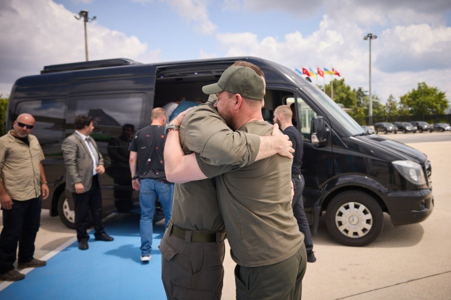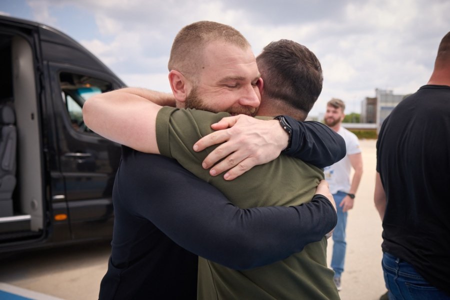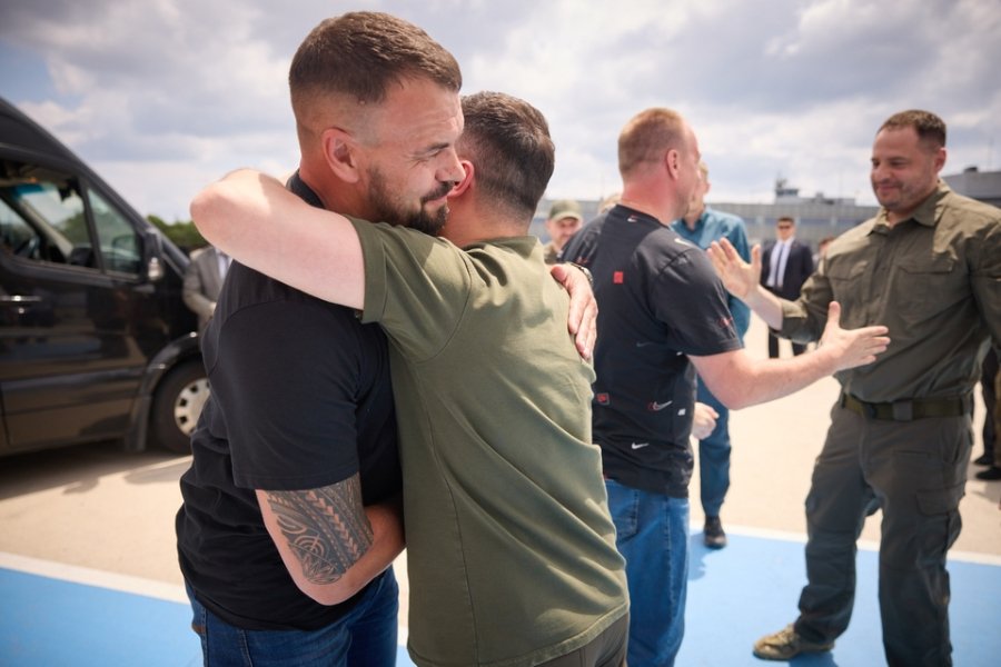 Президент Володимир Зеленський зустрів захисників в аеропорту Стамбула та привітав їх із поверненням.
