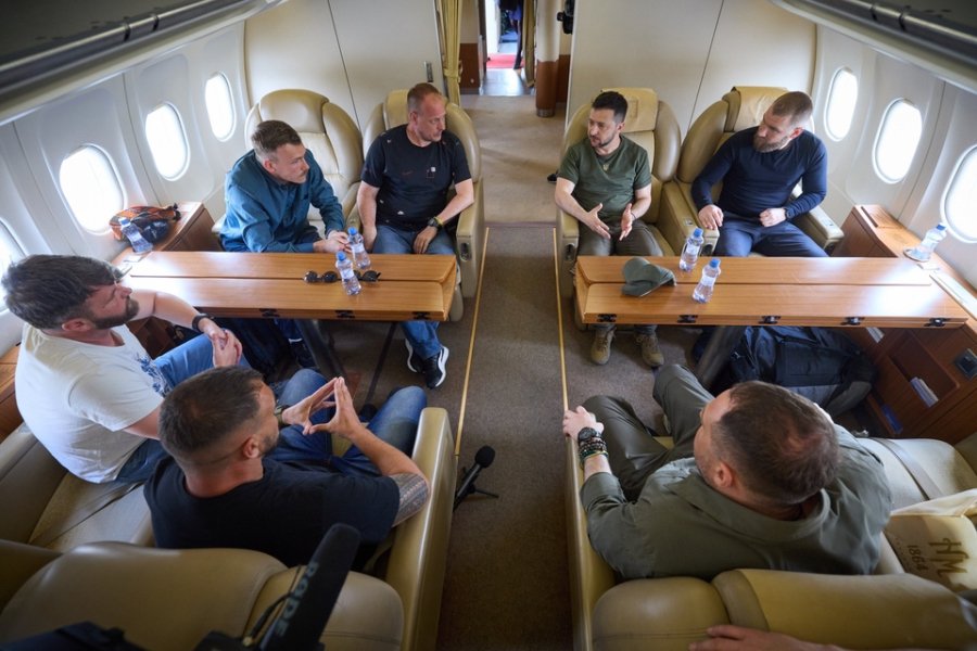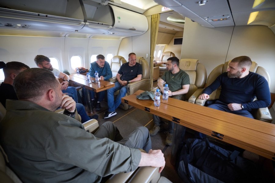 На борту літака Володимир Зеленський поспілкувався із захисниками «Азовсталі» та подякував за їхню мужність та стійкість.